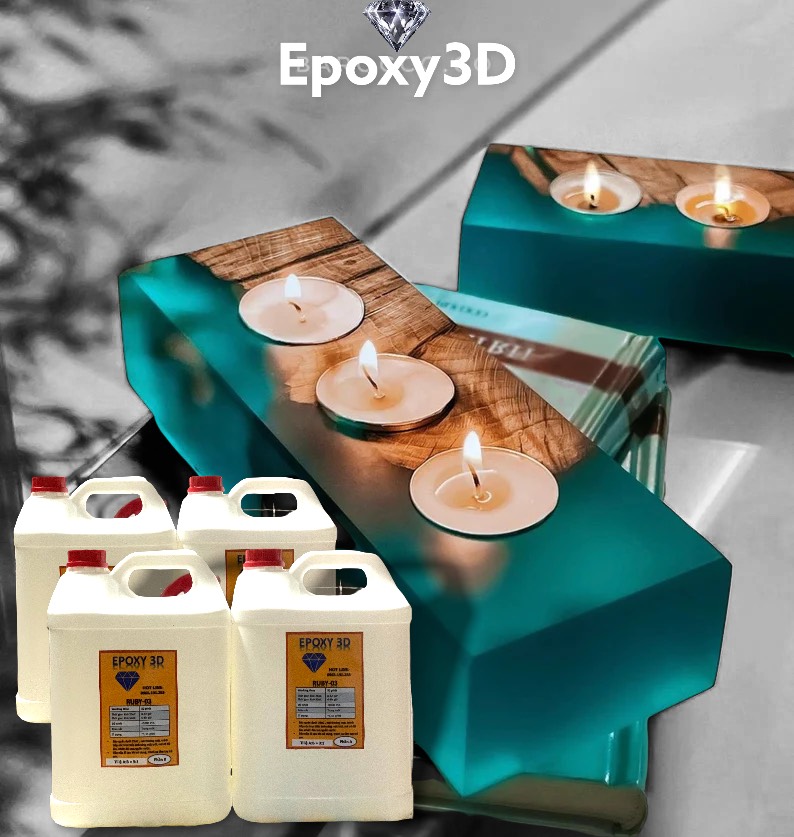 • Bộ 20 KG Nhựa Epoxy Resin 3D Ruby-04 đổ khối kháng ngả màu